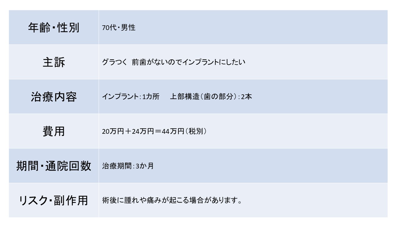 グラつく 前歯がないのでインプラントにしたい ー70代 男性ーインプラント