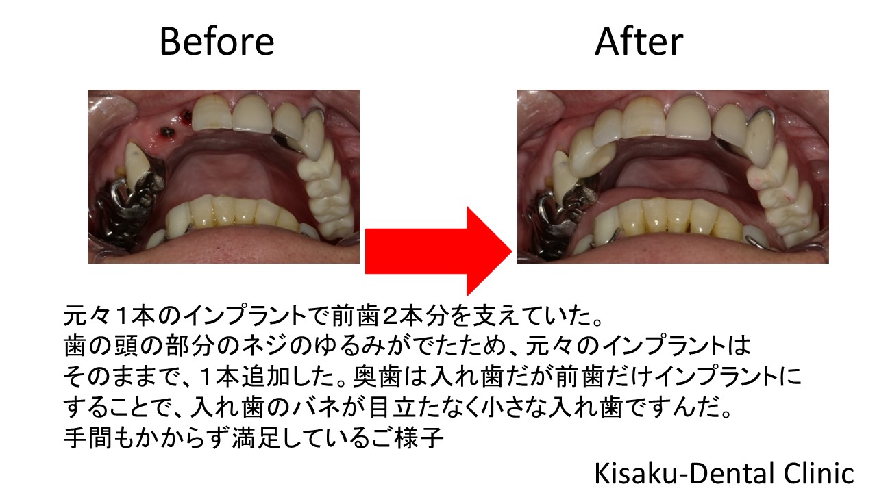 そのままで、1本追加した。奥歯は入れ歯だが前歯だけインプラントに