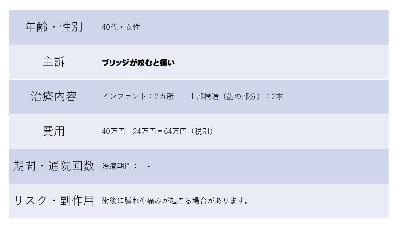 ブリッジが咬むと痛い 40代 女性ーインプラントー