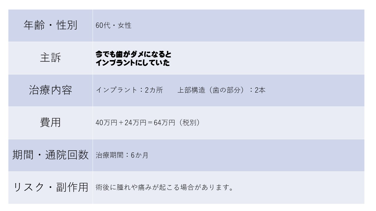 今でも歯がダメになるとインプラントにしていた 60代 女性ーインプラントー