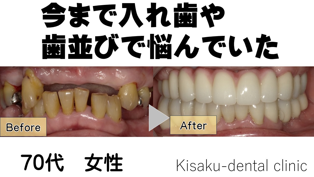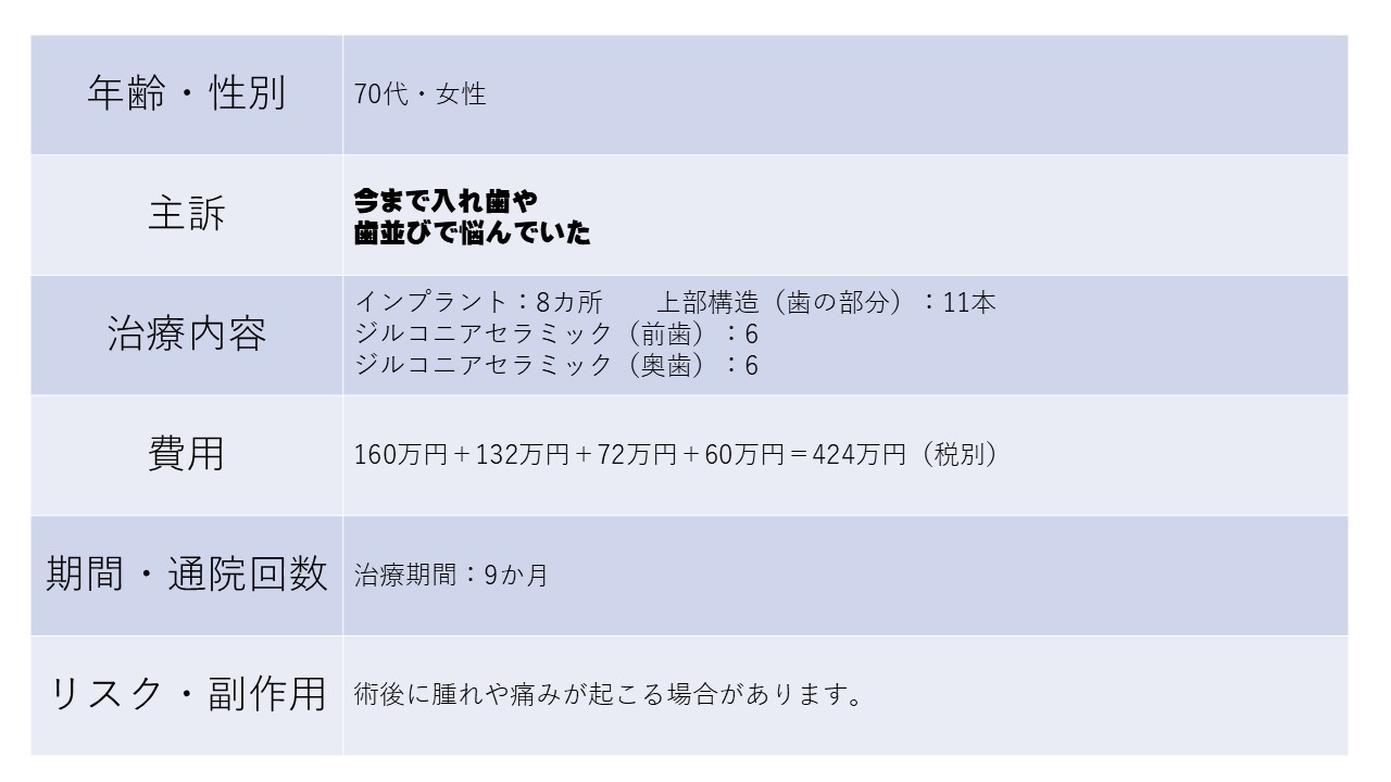 今まで入れ歯や歯並びで悩んでいた 70代 女性ーインプラントー