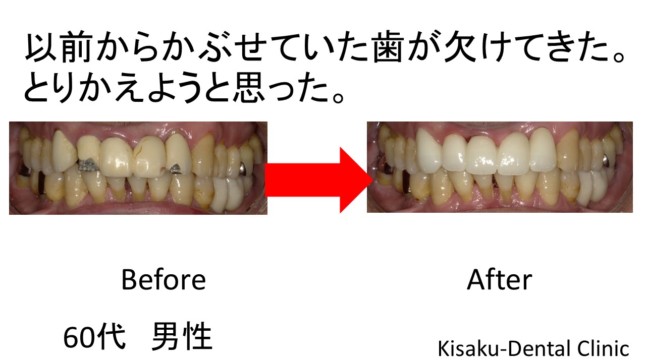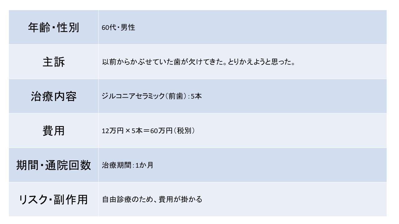 以前からかぶせいていた歯が欠けてきた。とりかえようと思った。 60代 男性ージルコニアセラミックー