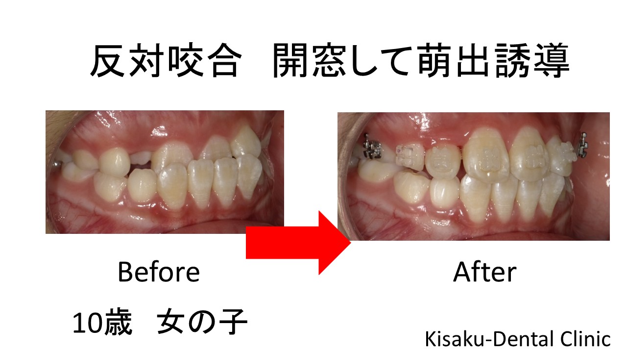 反対咬合 開窓して萌出誘導 -10歳 女の子ー矯正