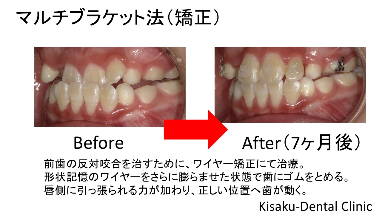 前歯の反対咬合を治すために、ワイヤー矯正にて治療。