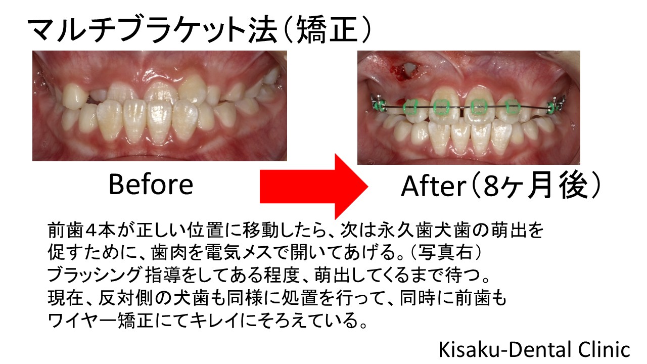 前歯4本が正しい位置に移動したら、次は永久歯犬歯の萌出を