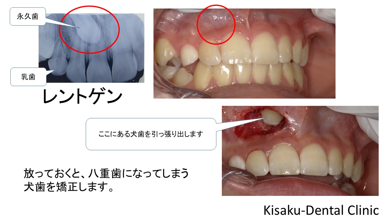 その為に、咬み合わせも合わなくなっているので、まず乳歯を抜歯してスペースを作り、歯茎を切開して、