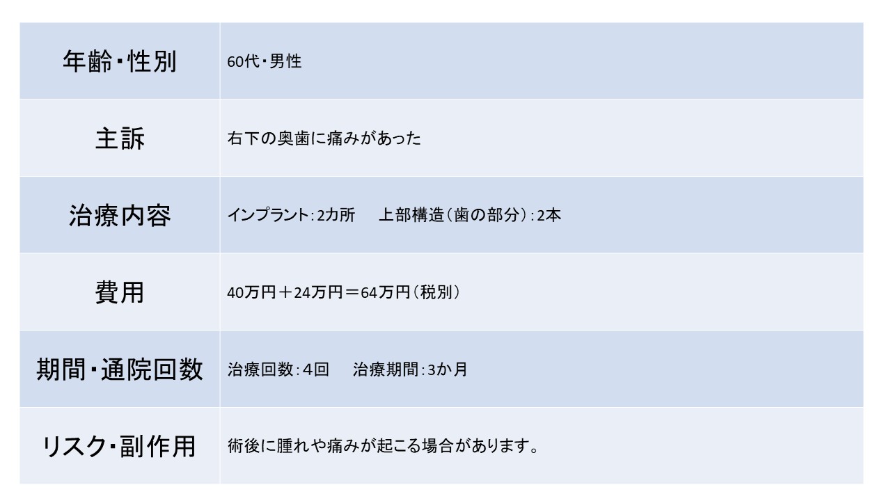 右下の奥歯に痛みがあった ー60代 男性ー インプラント