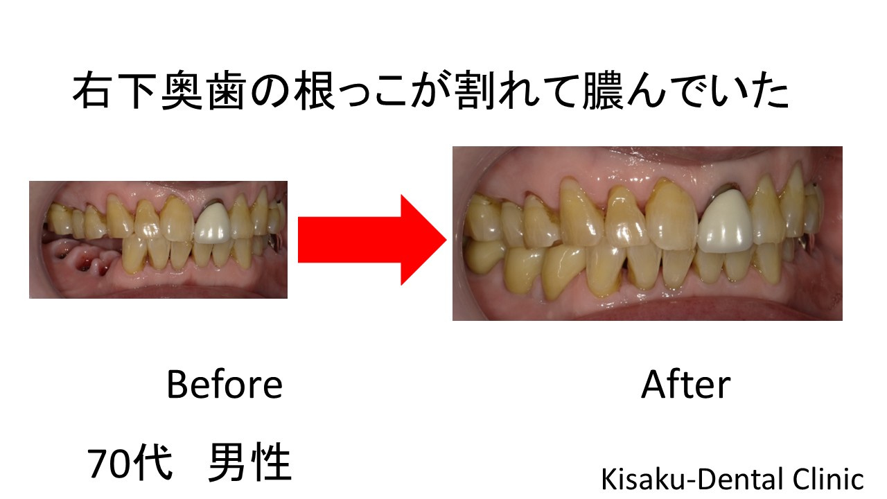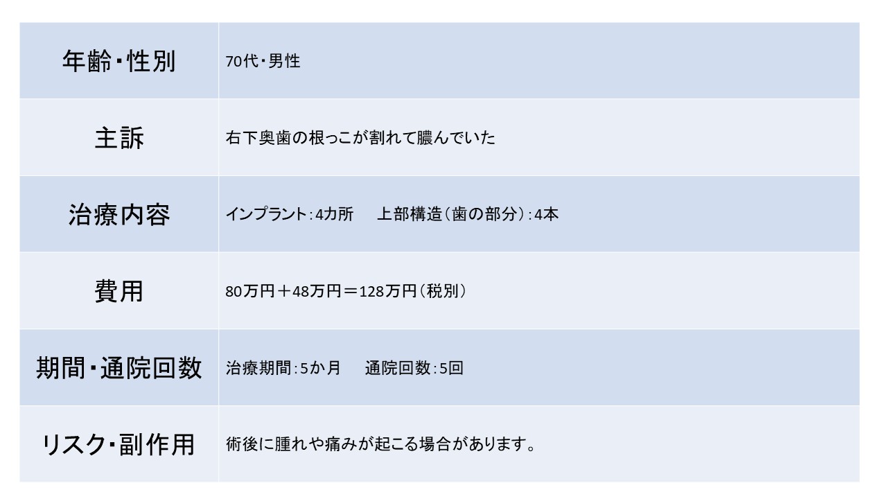 右下奥歯の根っこが割れて膿んでいた 70代 男性ーインプラントー