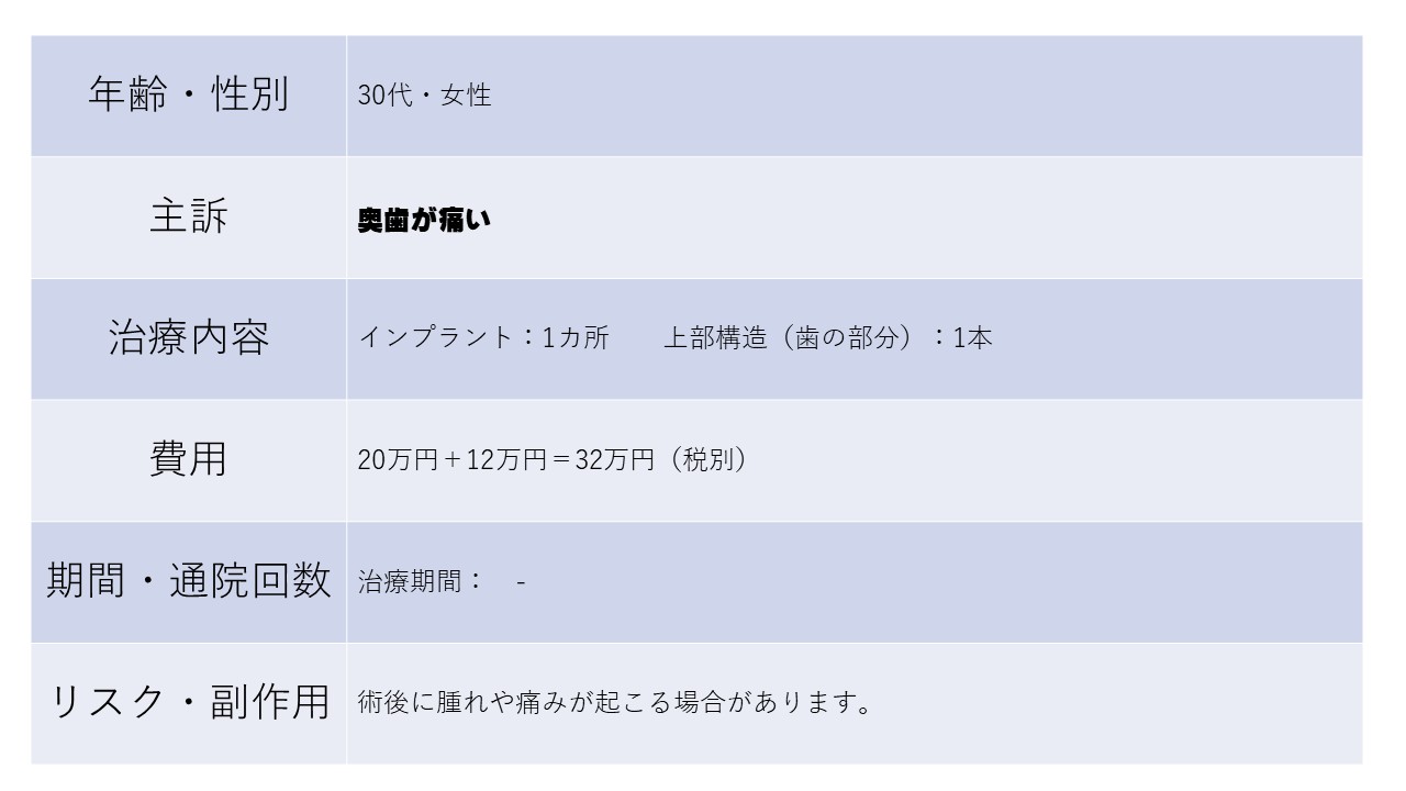奥歯が痛い 30代 女性-インプラントー