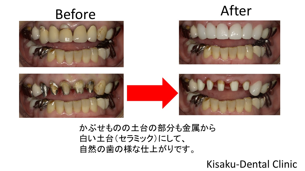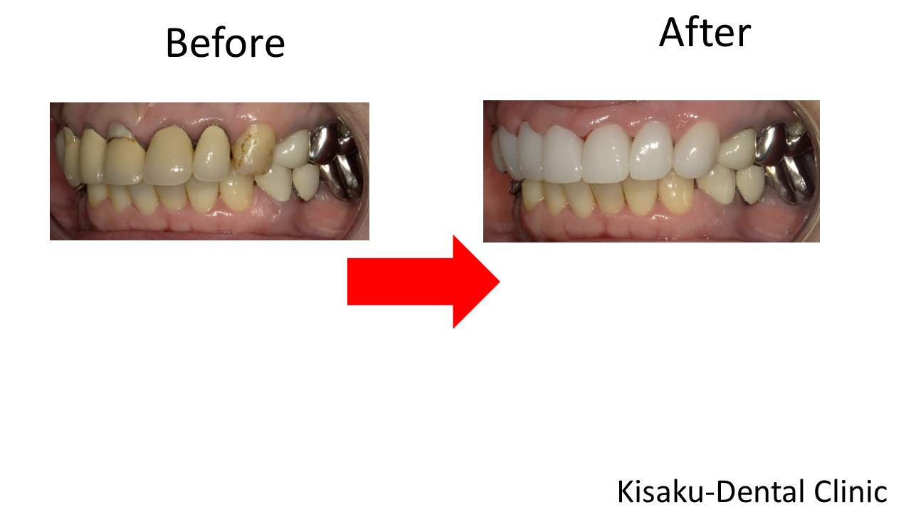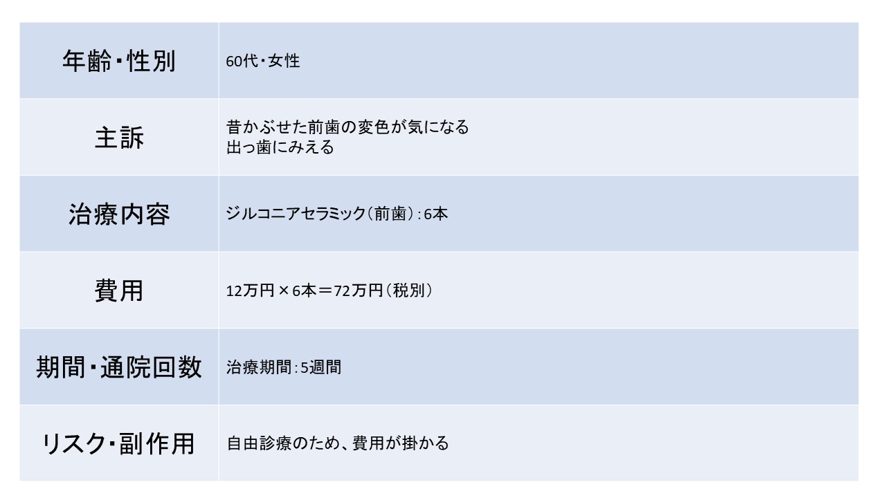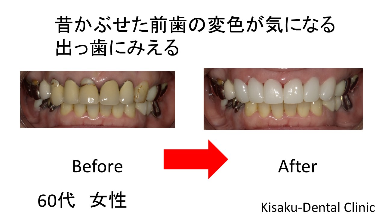 昔かぶせた前歯の変色が気になる 出っ歯にみえる ー60代 女性ー ジルコニアセラミック