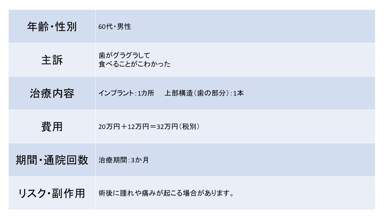 歯がグラグラして食べることがこわかった 60代 男性ーインプラントー