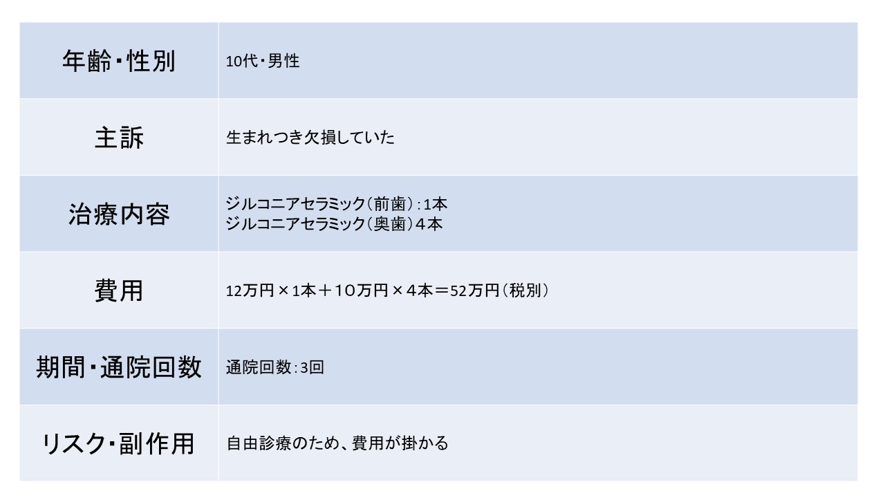 生まれつき欠損していた                                               10代 男性ージルコニアセラミックー