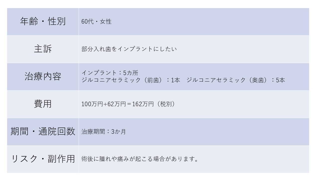 部分入れ歯が合わないー60代女性ー インプラント