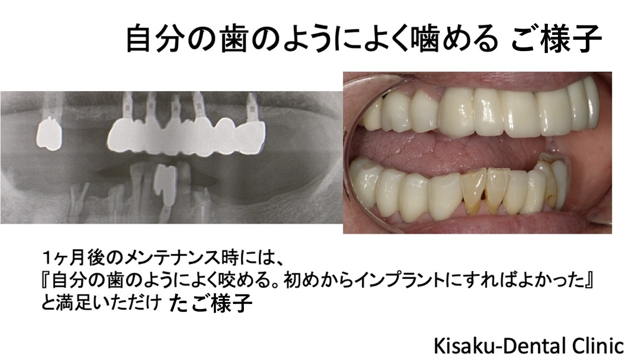 メンテナンス時には「自分の歯のようによく咬める。初めからインプラントにすれば良かった。」と