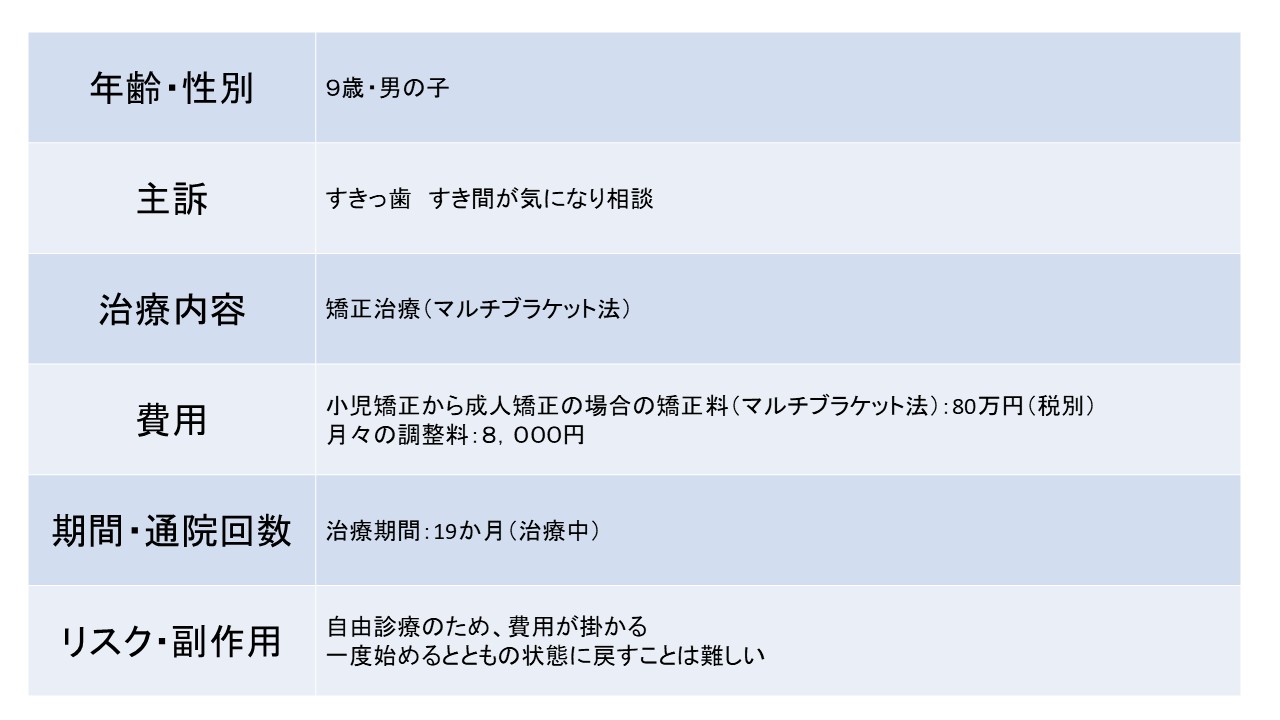 すきっ歯 すき間が気になり相談 9歳 男の子ー矯正(マルチブラケット法)ー