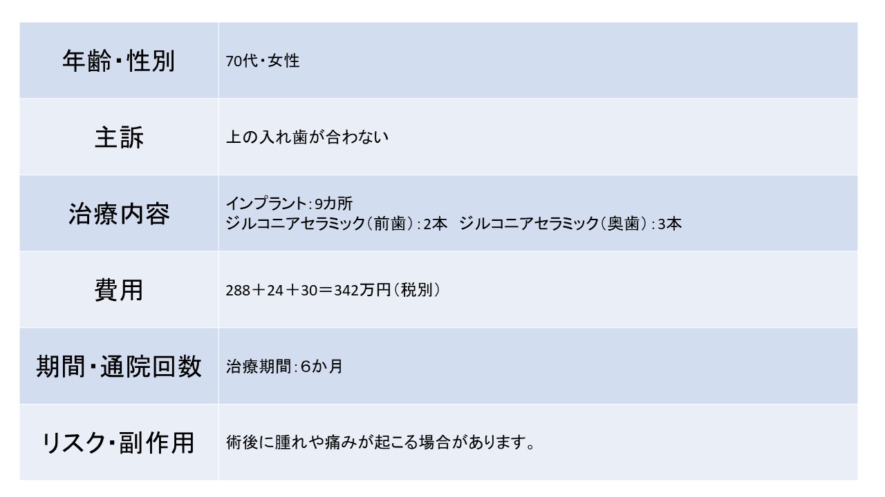 上の入れ歯が合わないー70代女性ー インプラント治療