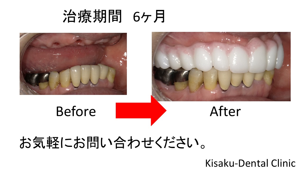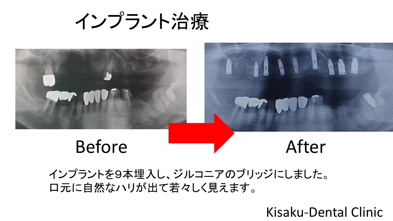 インプラントを9本埋入し、ジルコニアのブリッジにしました。