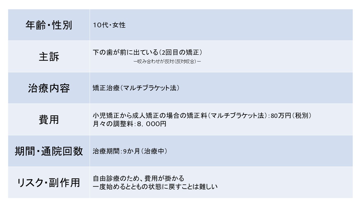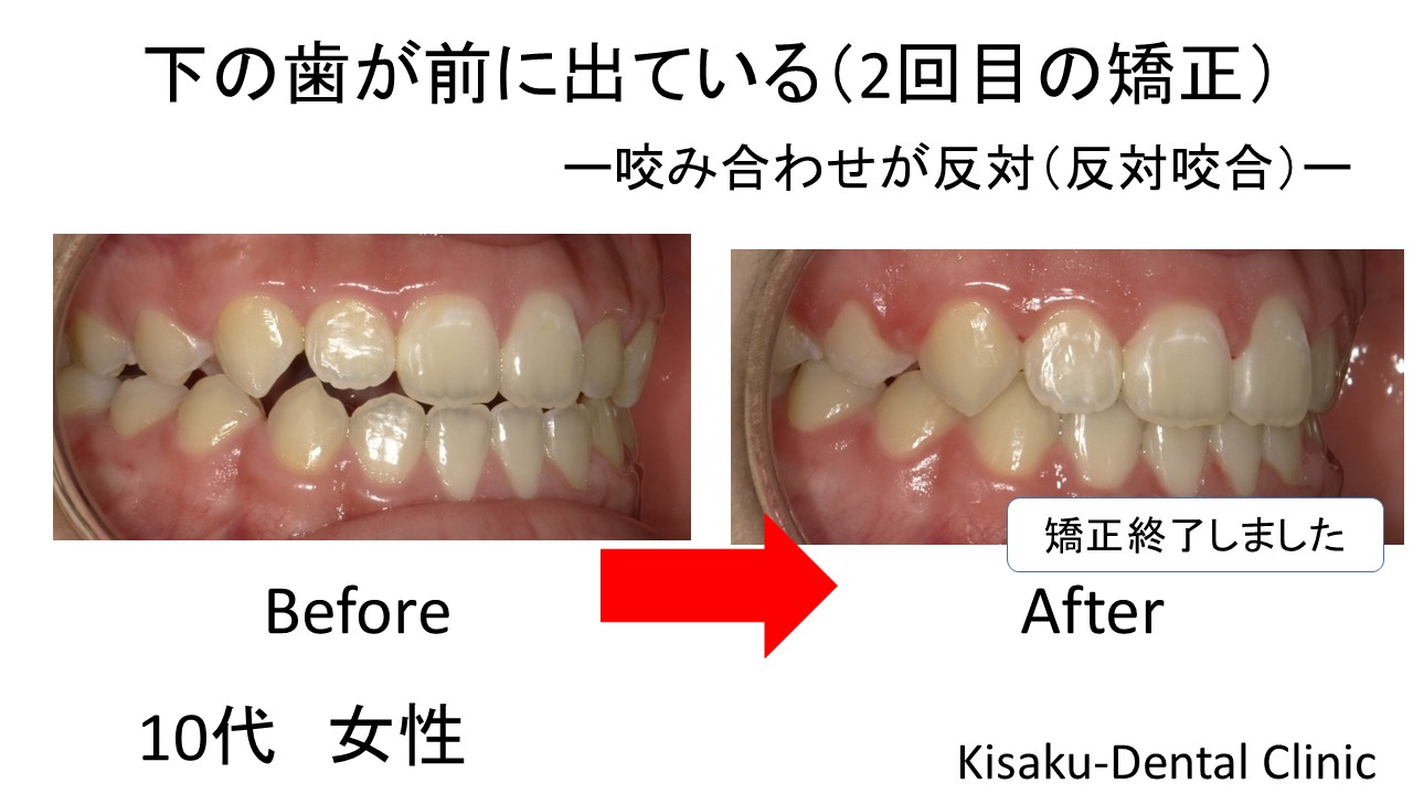 下の歯が前に出ている(2回目の矯正) 咬み合わせが反対(反対咬合) 10代 女性ー矯正(マルチブラケット法)完結編ー