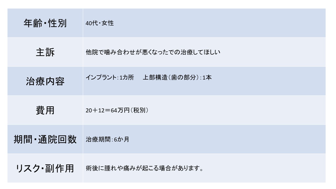 他院で治療したが、思うようにいかず・・・ー40代 女性ーインプラント