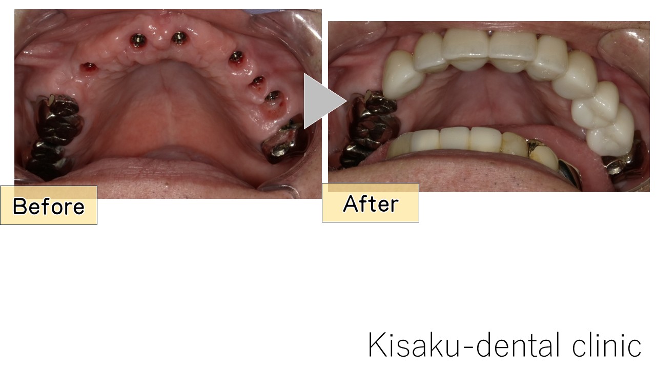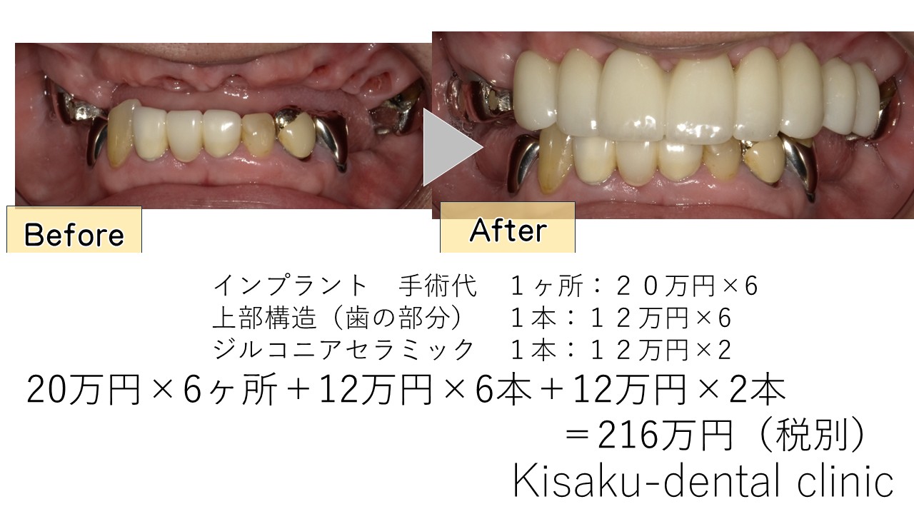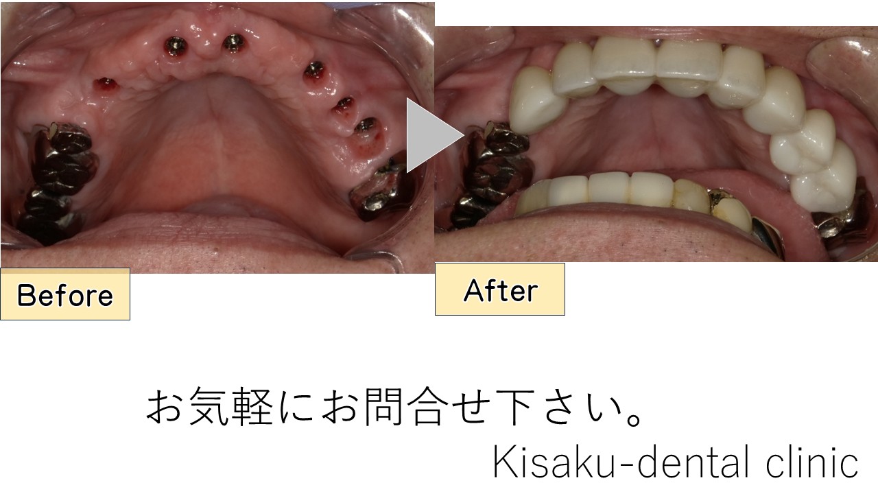 上の歯はほとんどなので、入れ歯しかないとあきらめていた。ここでインプラントのことを知ってお願いした。