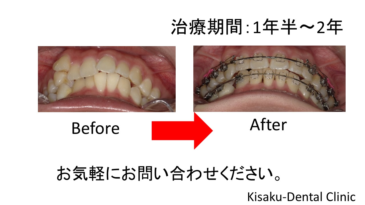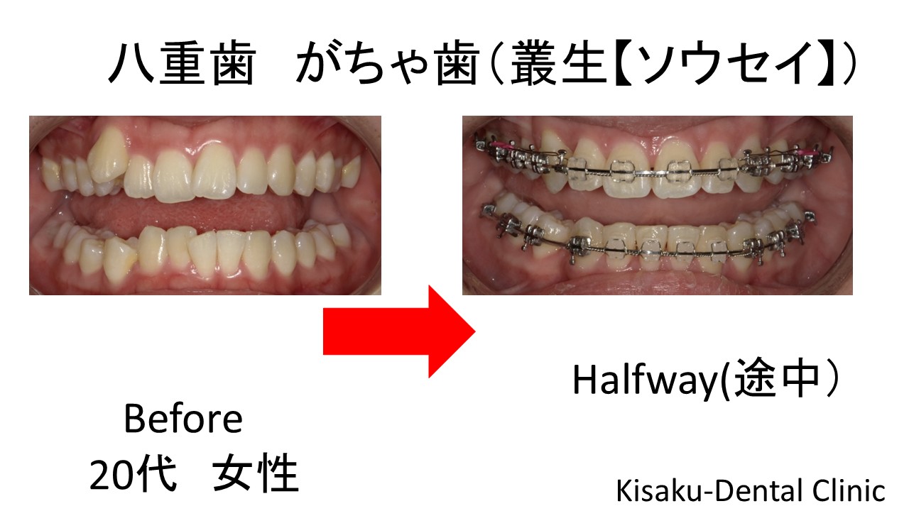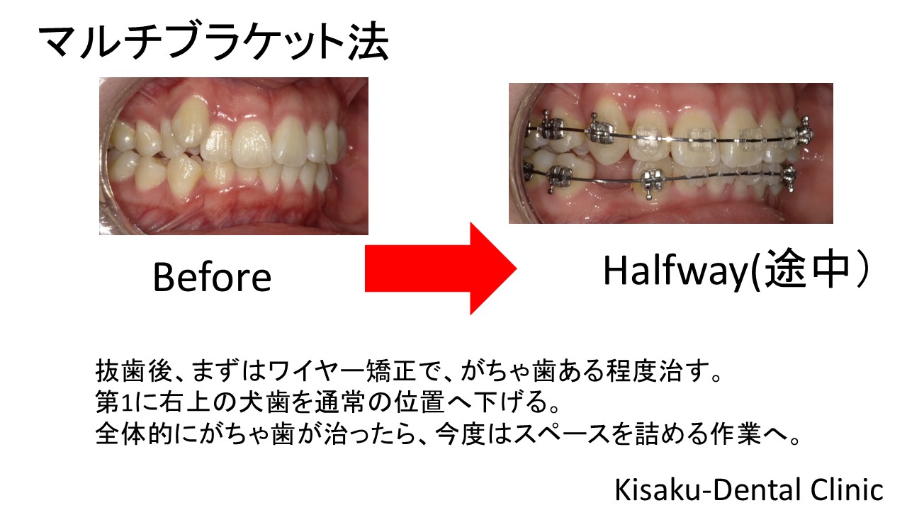 抜歯後、まずはワイヤー矯正で、がちゃ歯ある程度治す。