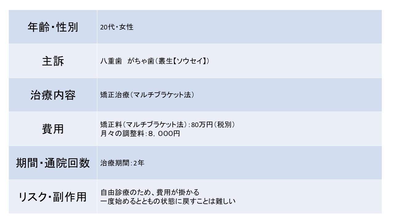八重歯 がちゃ歯(叢生【ソウセイ】) 20代 女性ー矯正(マルチブラケット法)ー