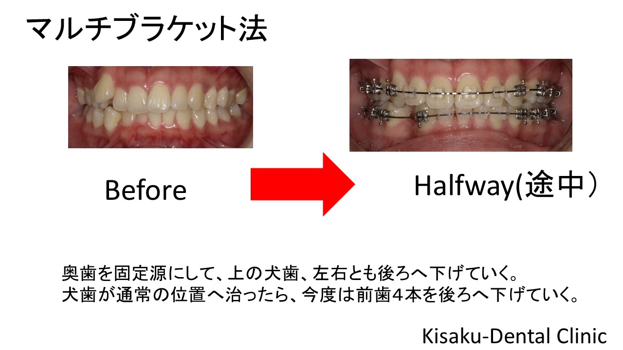 奥歯を固定源にして、上の犬歯、左右とも後ろへ下げていく。