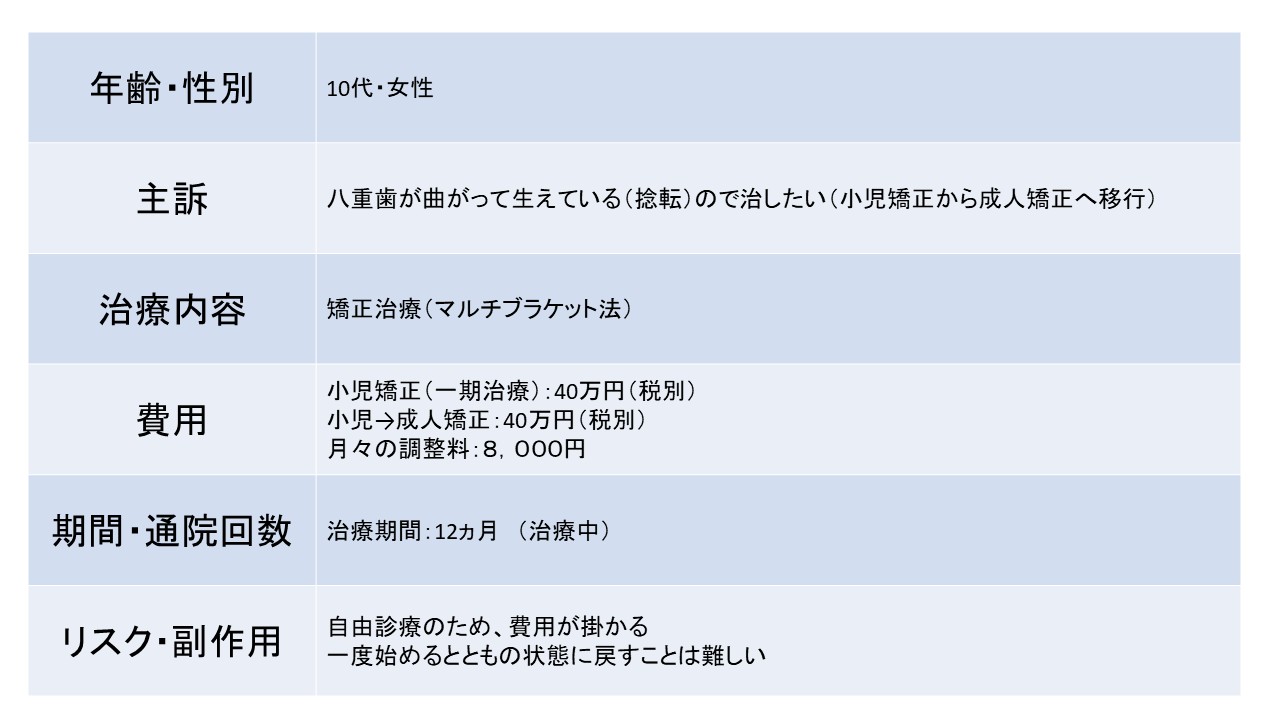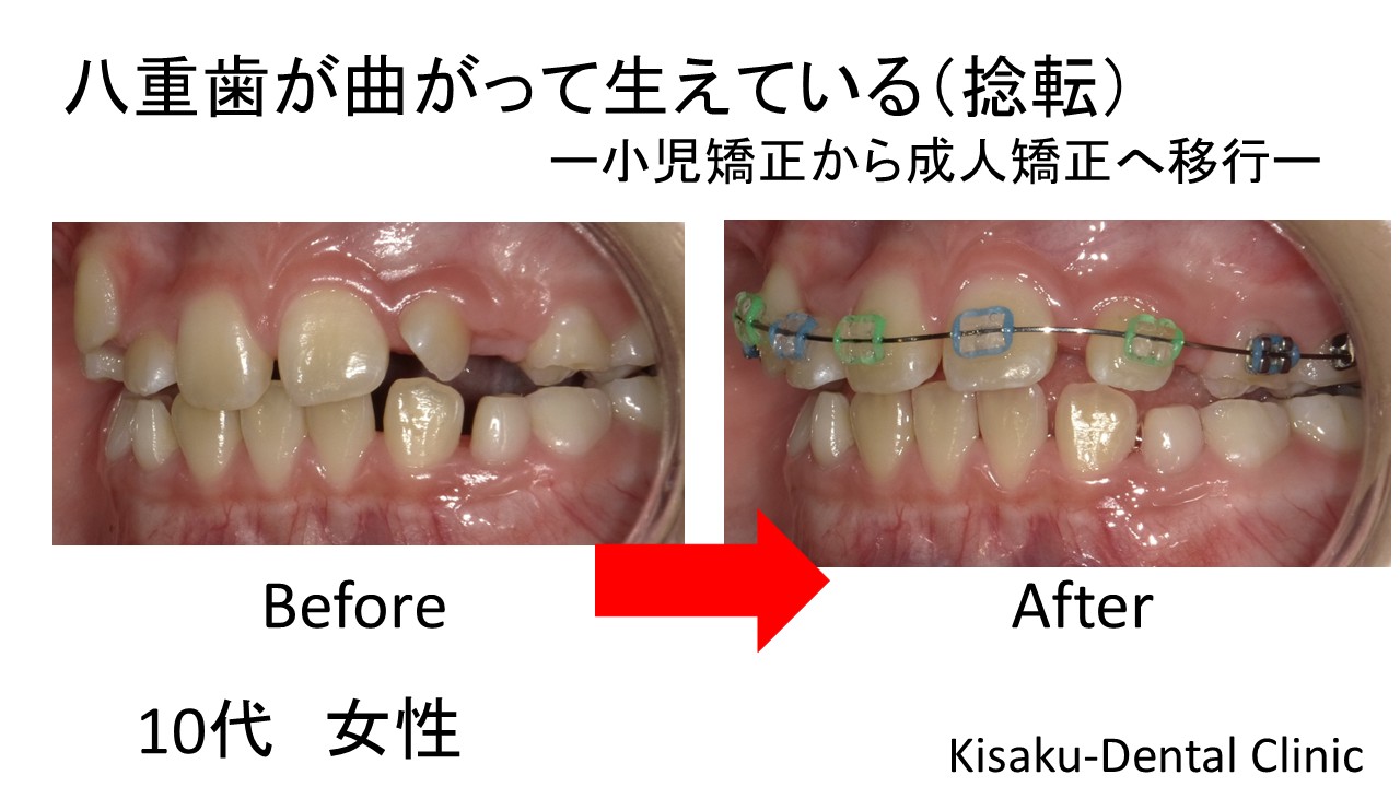 八重歯が曲がって生えている(捻転)ー10代女性ー 矯正(マルチブラケット法)