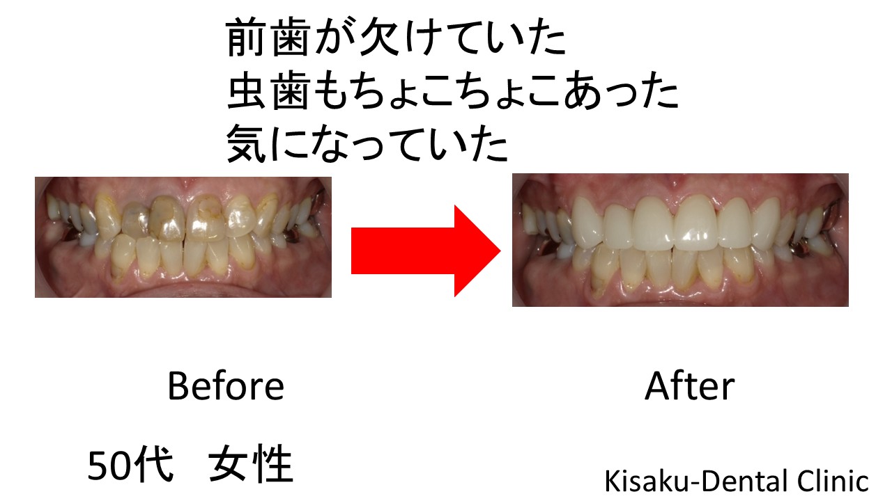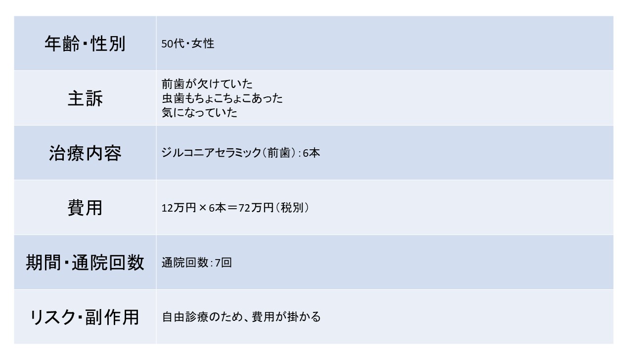 前歯が欠けていた 虫歯もちょこちょこあった 気になっていた 50代 女性ージルコニアセラミックー