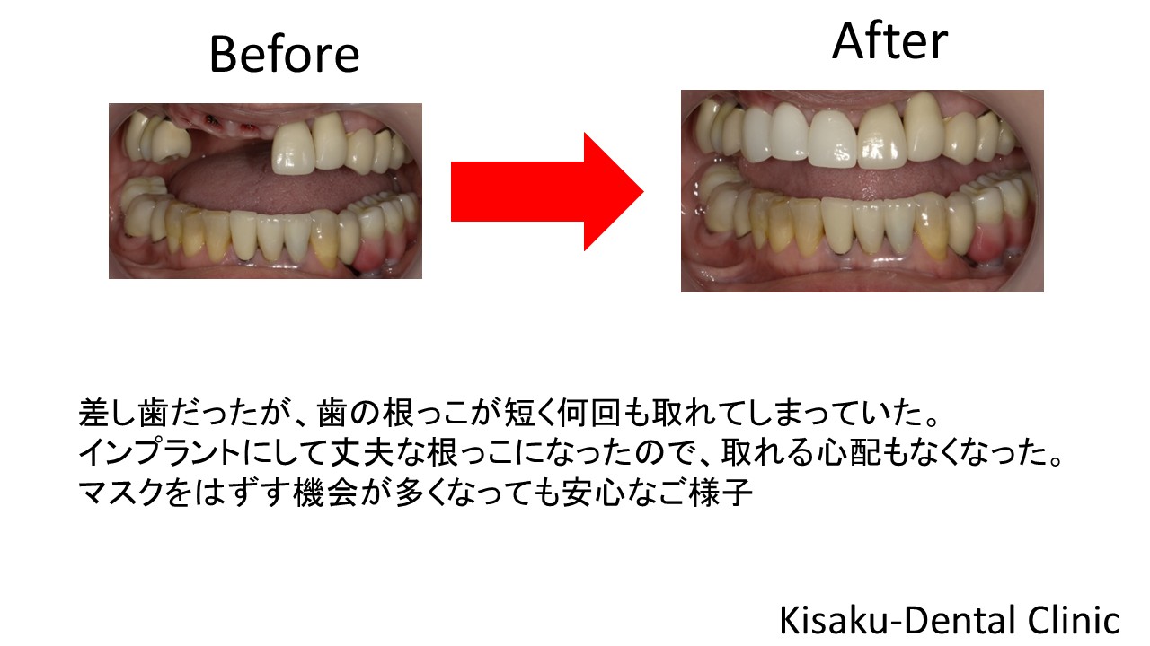 前歯の差し歯が何回も取れてしまう 60代 女性ーインプラントー