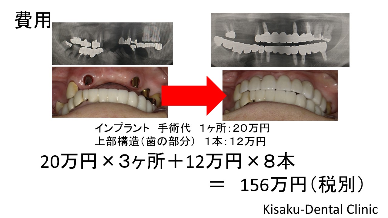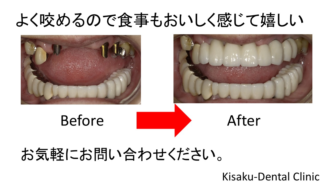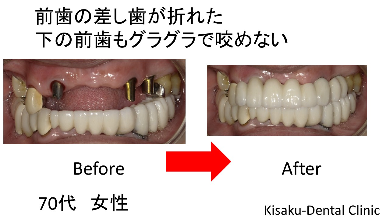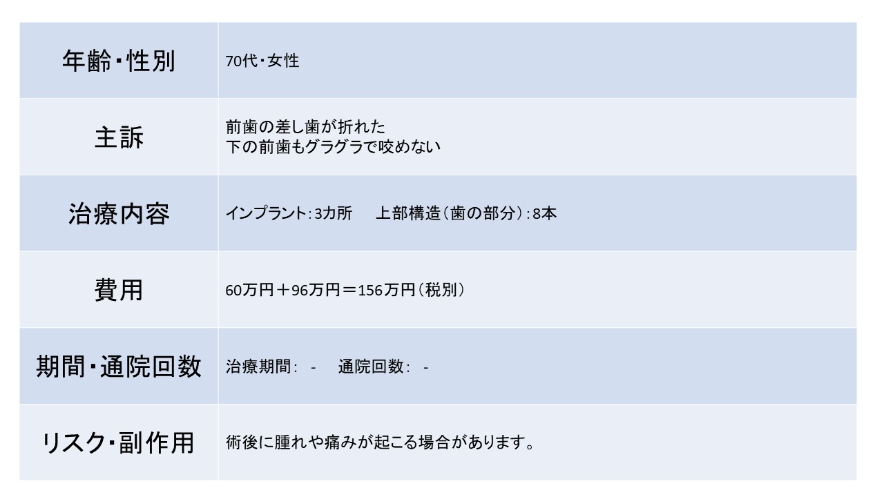 前歯の差し歯が折れた 下の前歯もグラグラで咬めない 70代 女性ーインプラントー