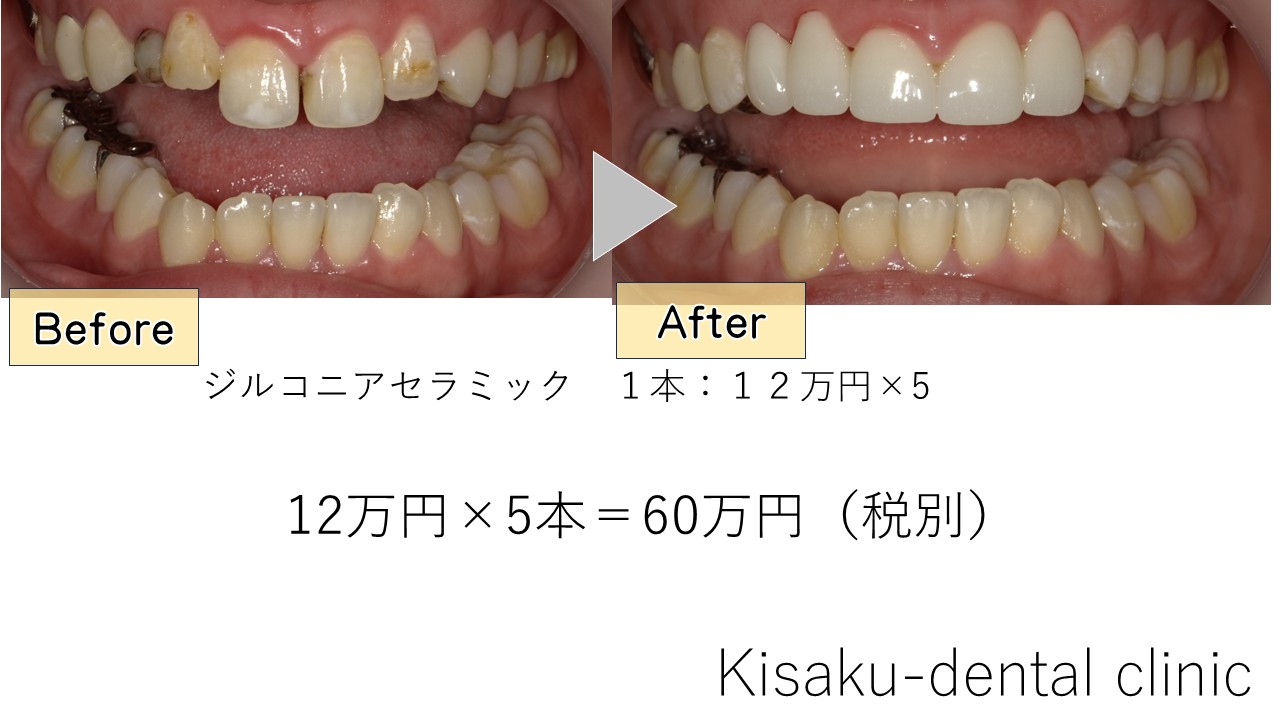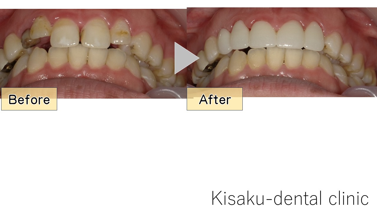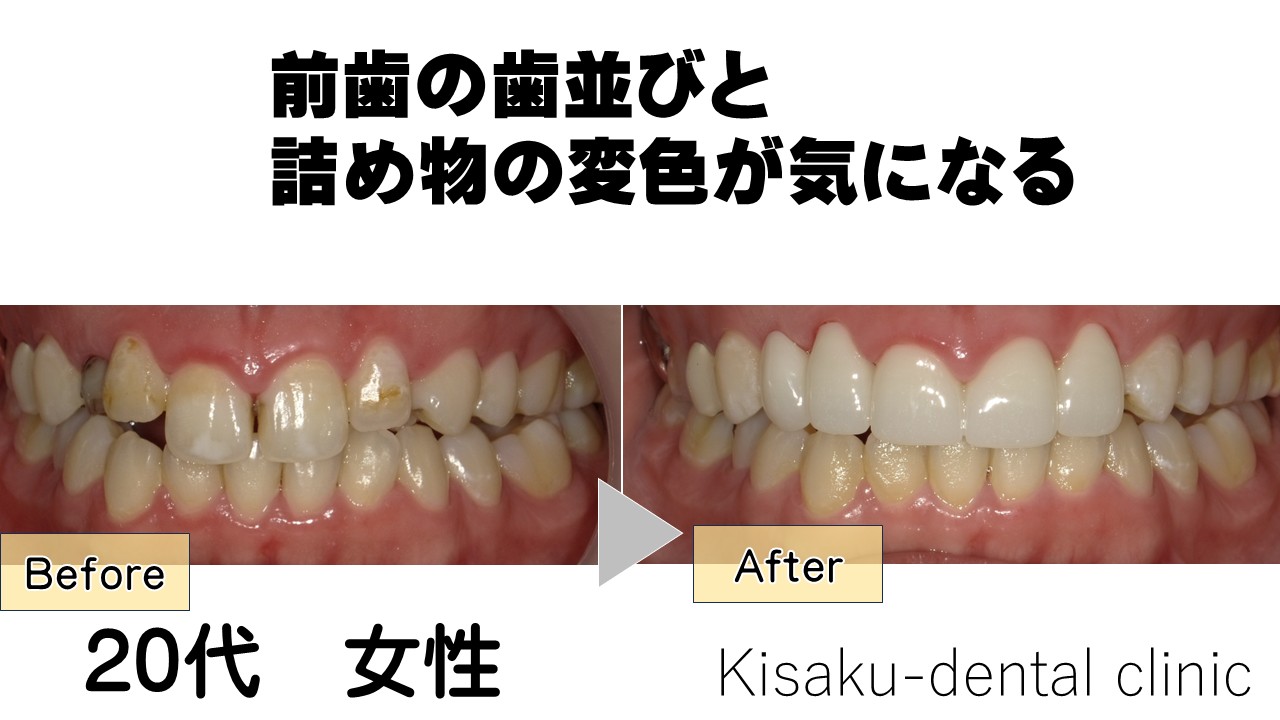 前歯の歯並びと詰め物の変色が気になる 20代 女性ージルコニアセラミックー