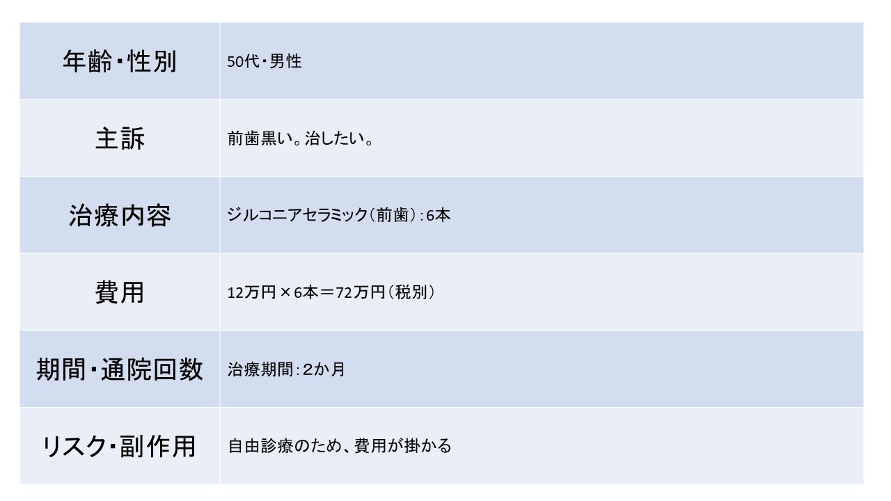 前歯黒い。治したい。 50代 男性ージルコニアセラミックー