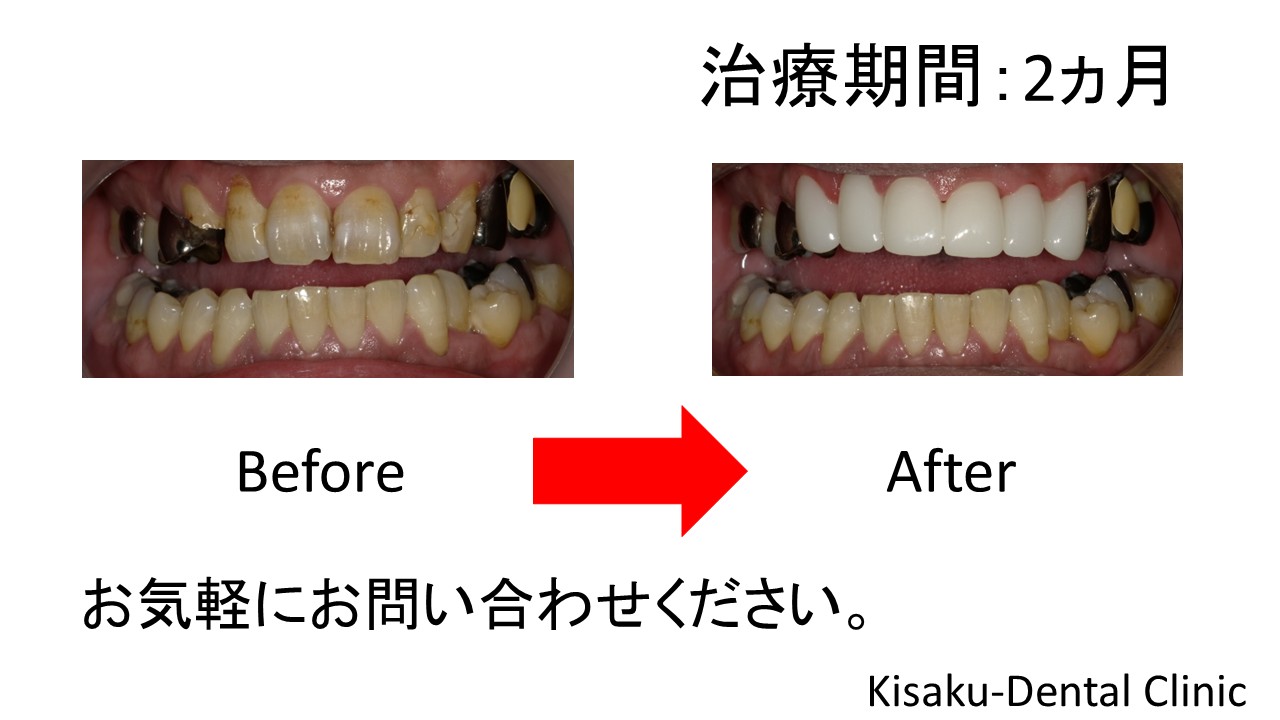 他の歯も詰め物が変色していて、上の前歯全部被せることにした。