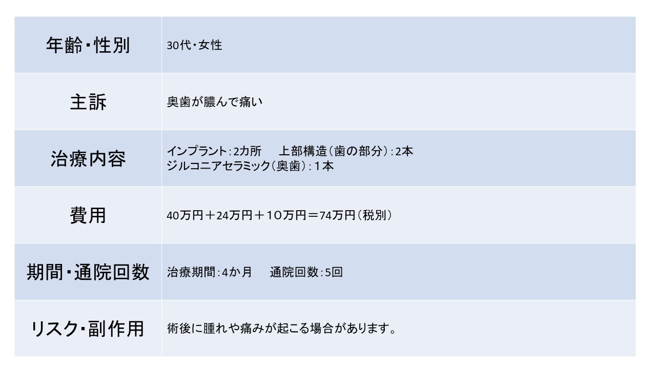 奥歯が膿んで痛い                         30代 女性-インプラントー