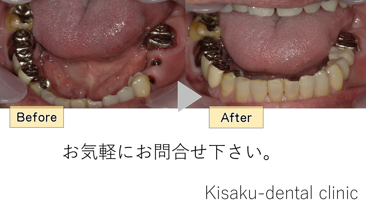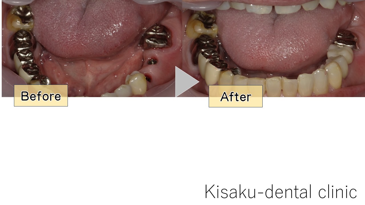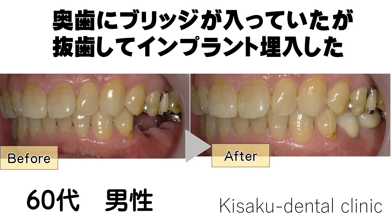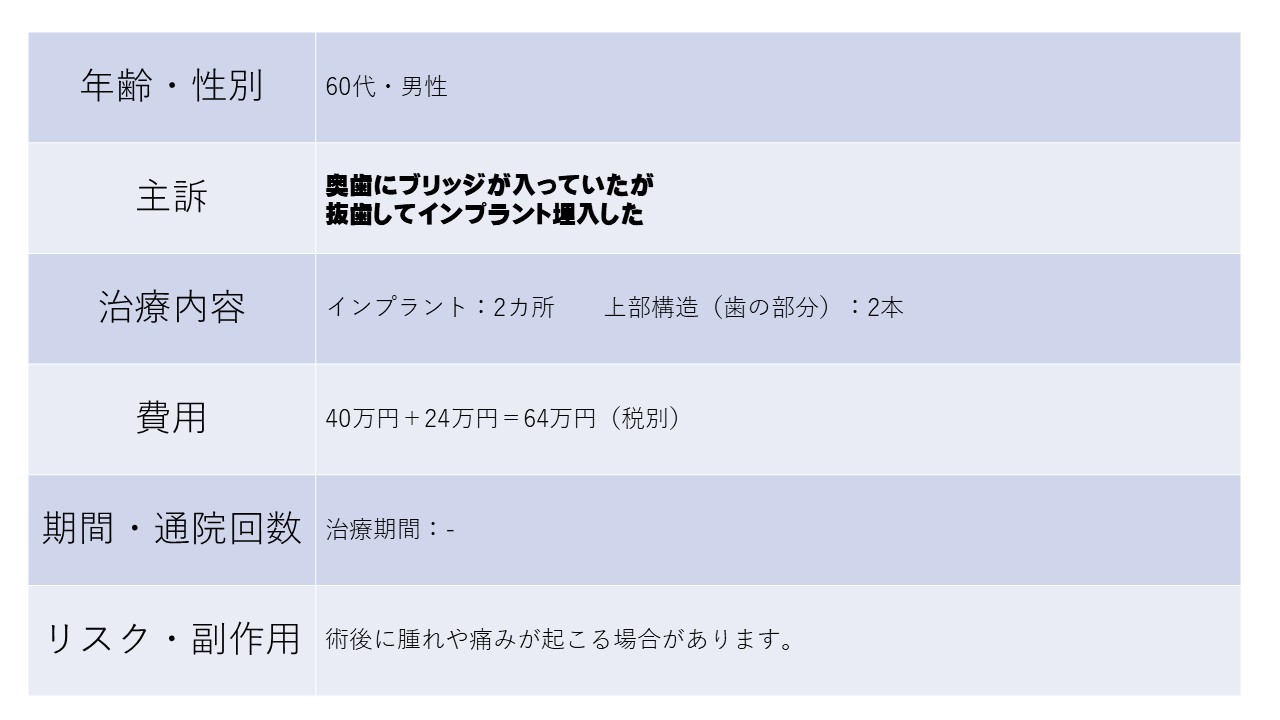 奥歯にブリッジが入っていたが抜歯してインプラント埋入した 60代 男性ーインプラントー