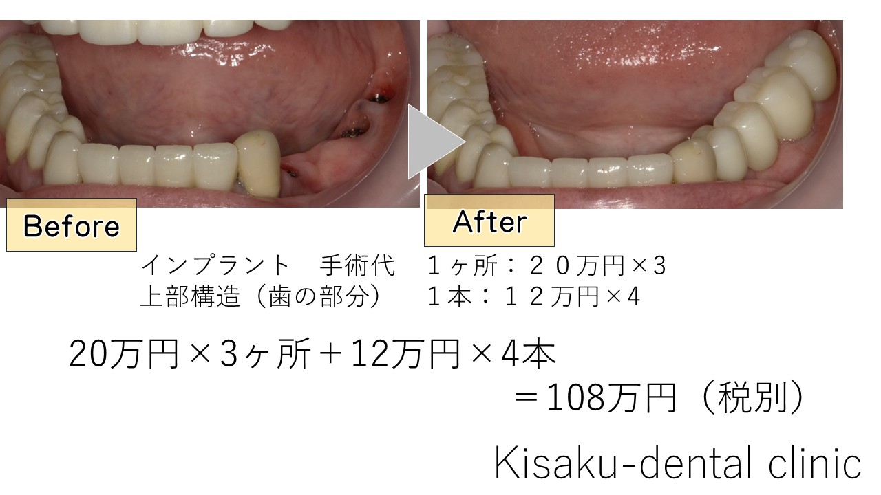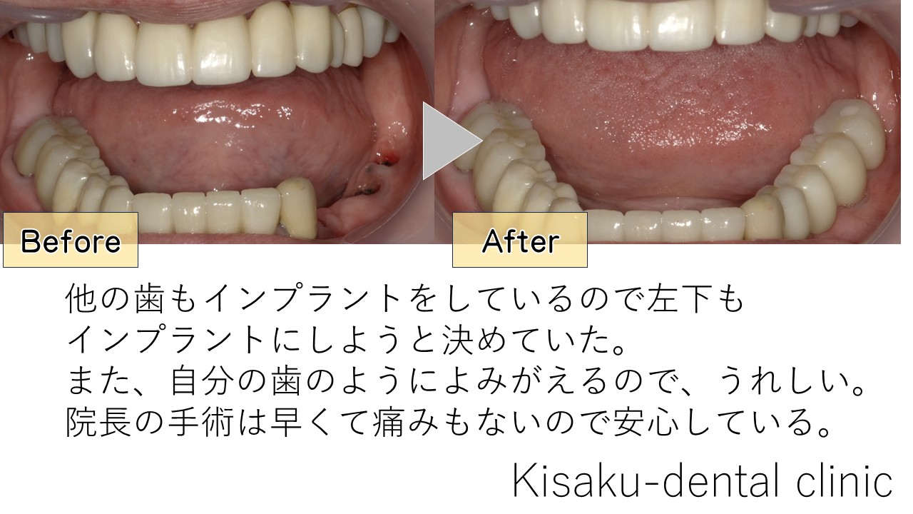 左下のブリッジがグラグラしてダメになってしまった                       60代 女性ーインプラントー