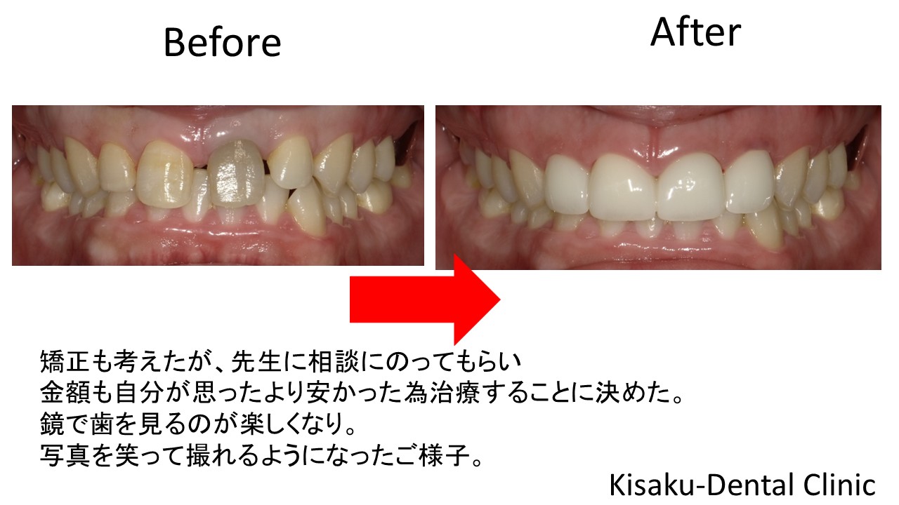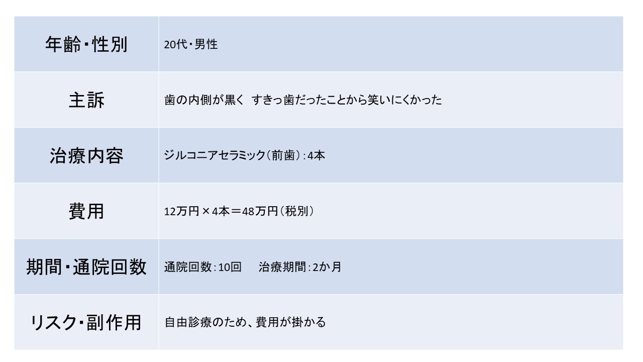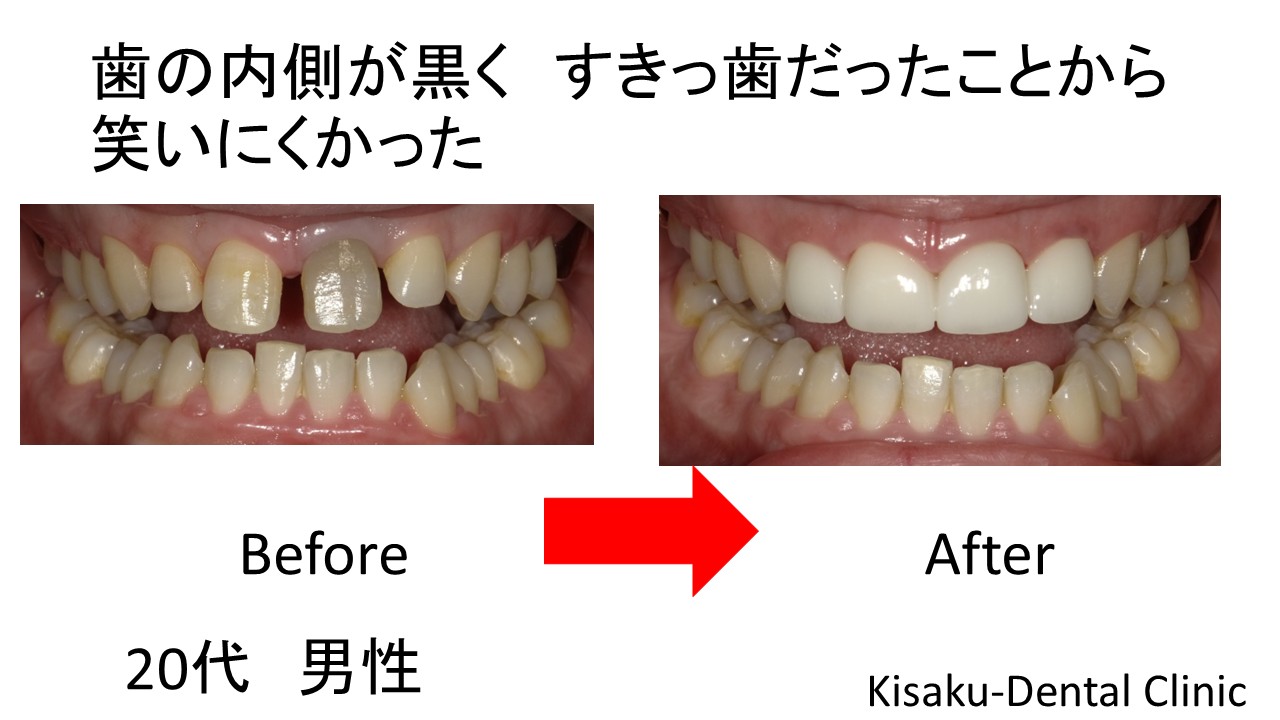 歯の内側が黒く すきっ歯だったことから笑いにくかったー20代 男性ージルコニアセラミック