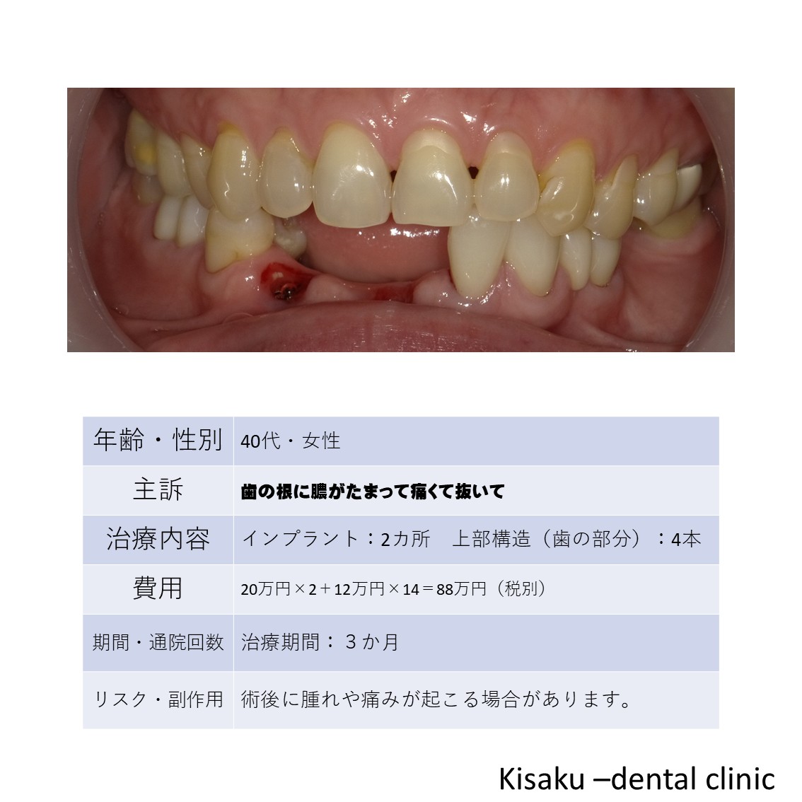 歯の根に膿がたまって痛くて抜いた 40代 女性ーインプラントー