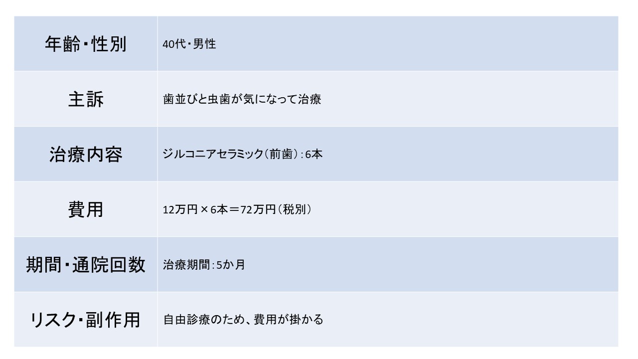歯並びと虫歯が気になって治療 40代 男性ージルコニアセラミックー