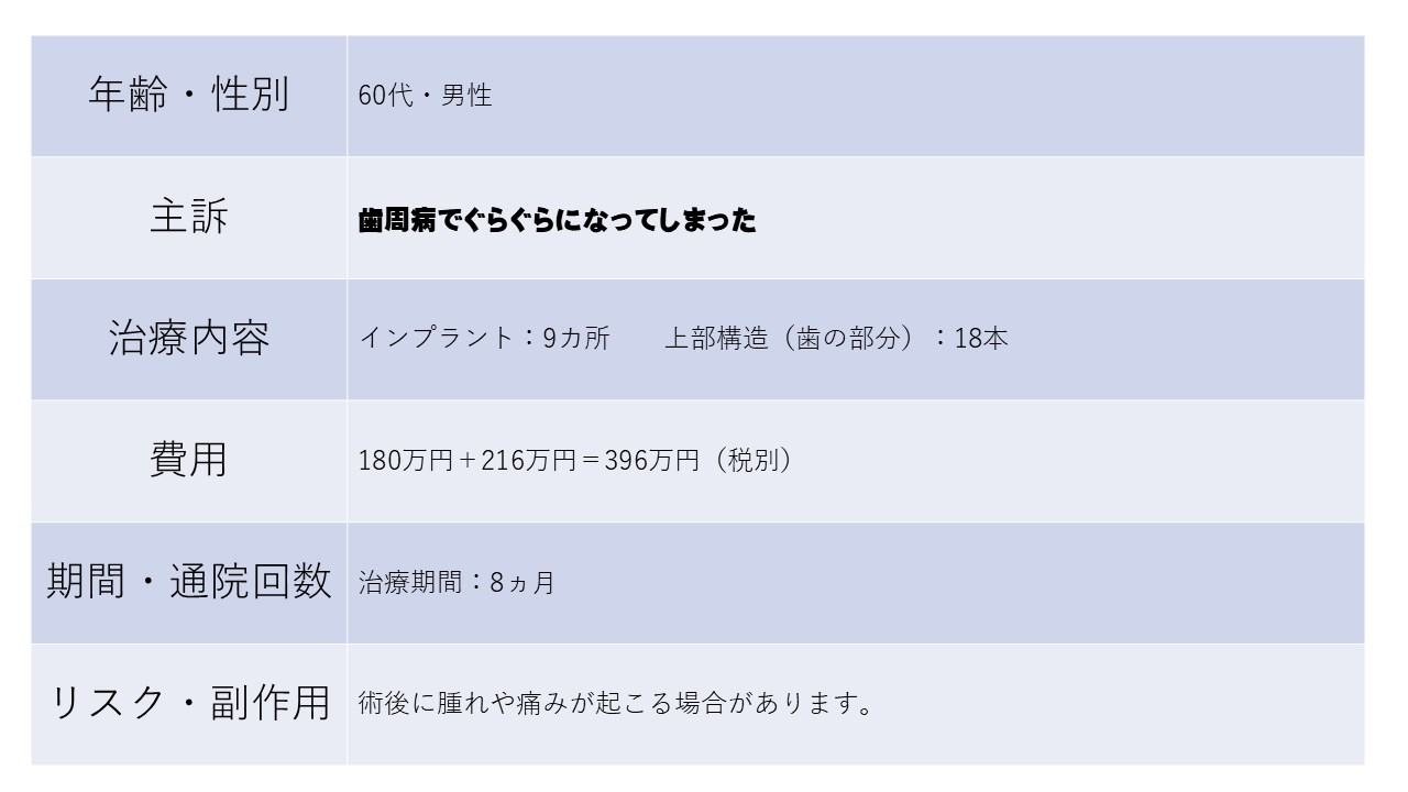 歯周病でぐらぐらになってしまった 60代 男性ーインプラントー