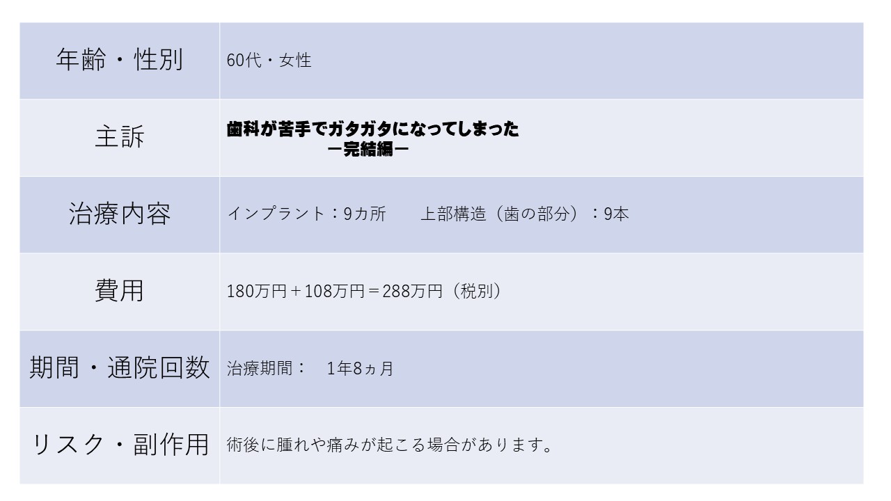 歯科が苦手でガタガタになってしまったー完結編ー 60代 女性 ーインプラントー