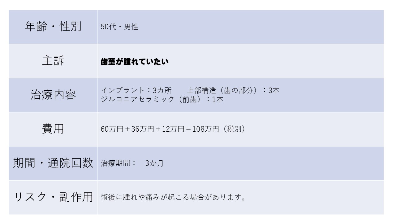 歯茎が腫れて痛い 50代 男性ーインプラントー