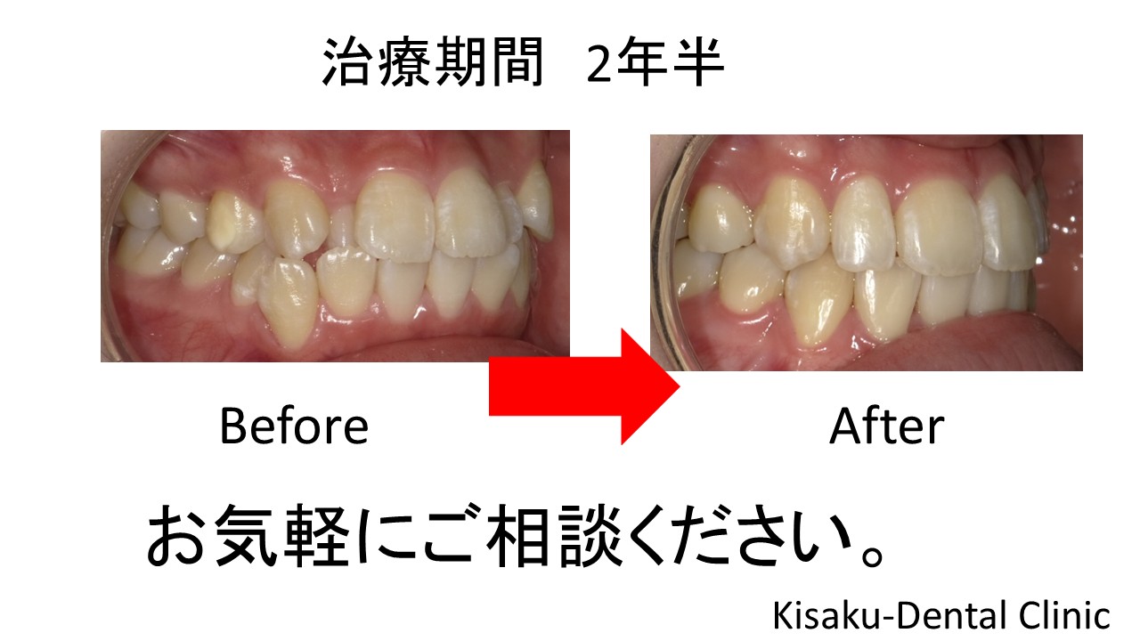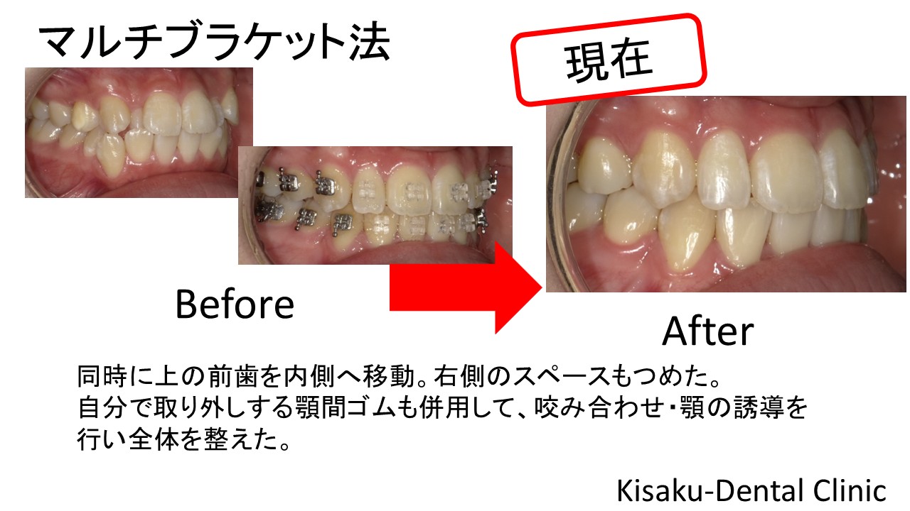 同時に上の前歯を内側へ移動。右側のスペースもつめた。