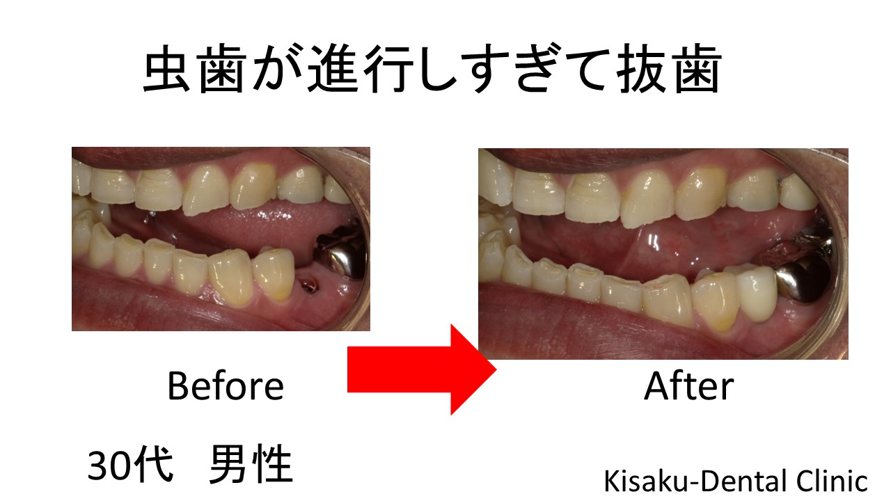 虫歯が進行しすぎて抜歯 -30代 男性ーインプラント
