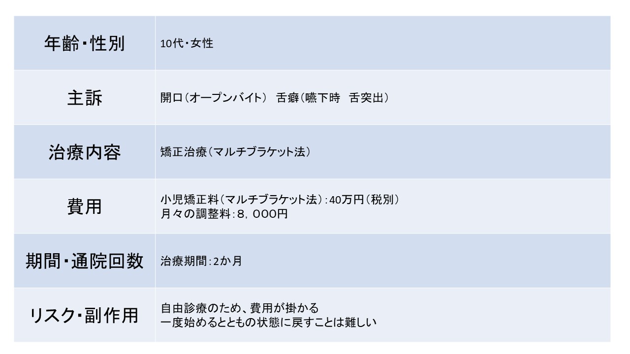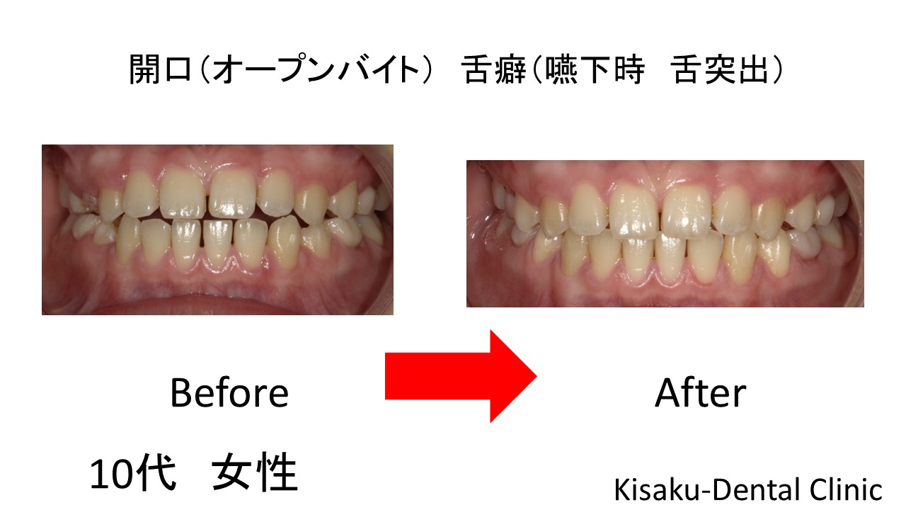 開口(オープンバイト) 舌癖(嚥下時 舌突出) 10代 女性ー小児矯正ー