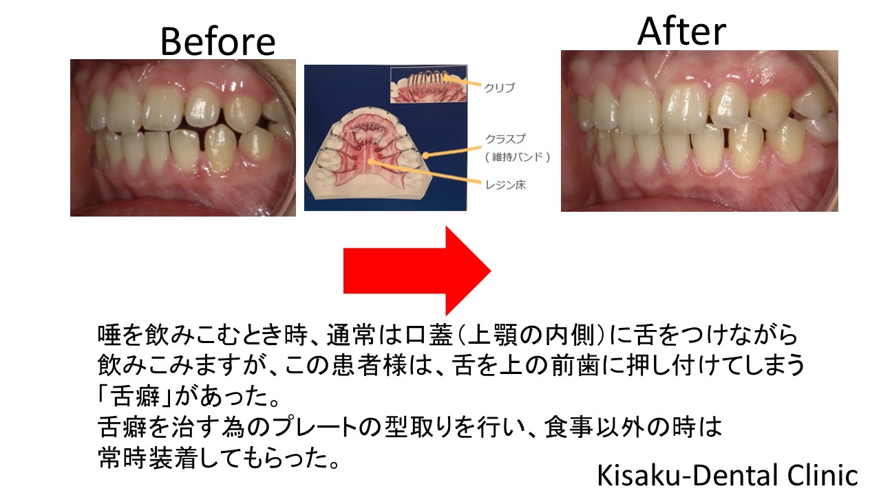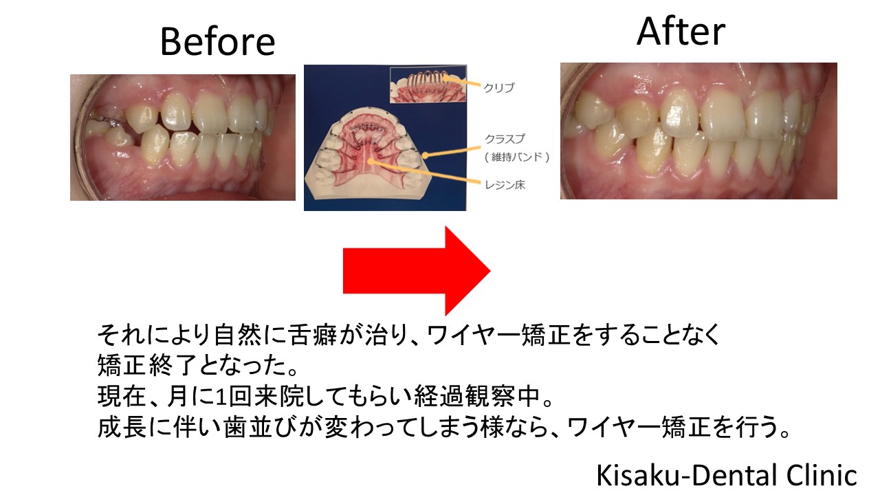 それにより自然に舌癖が治り、ワイヤー矯正をすることなく