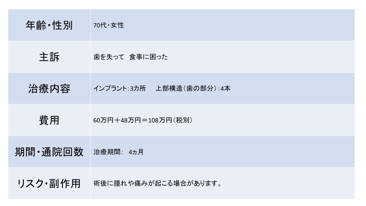 歯を失って 食事に困った 70代 女性ーインプラントー