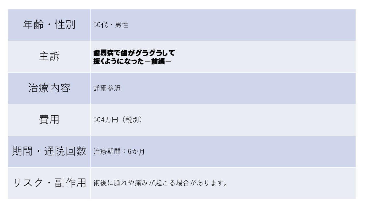 歯周病で歯がグラグラして 抜くようになったー前編ー 50代 男性ーインプラントー